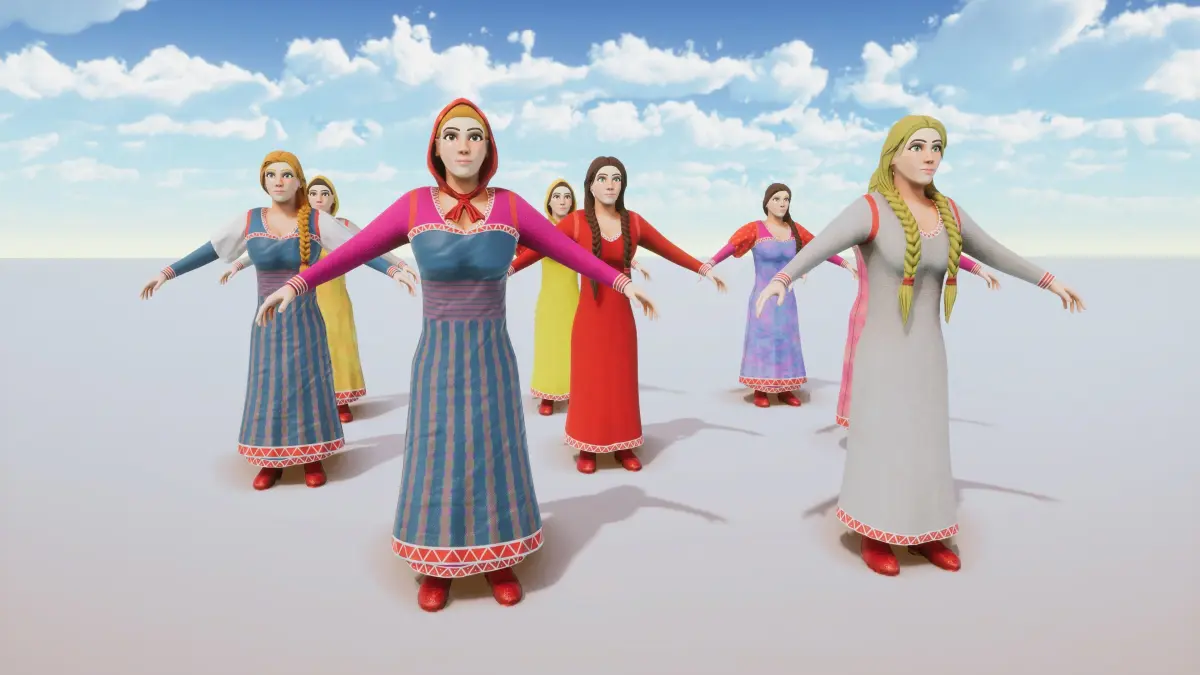 - Full advanced modular pack of medieval female people for Blender & Unity