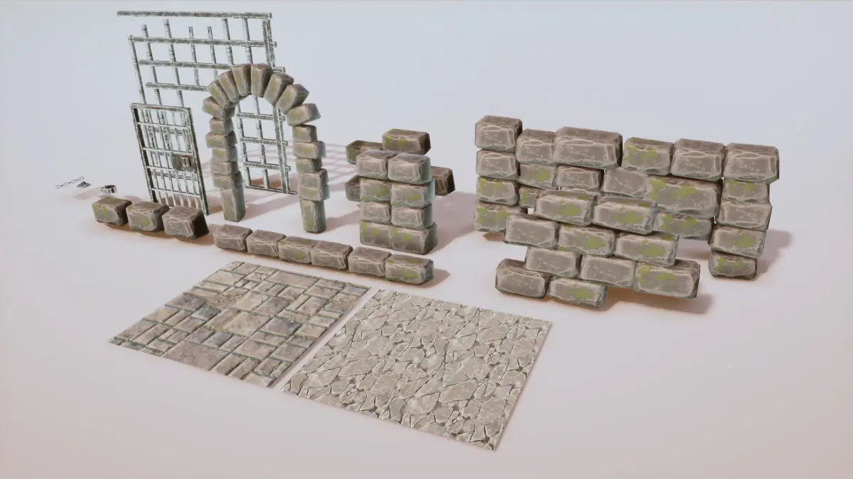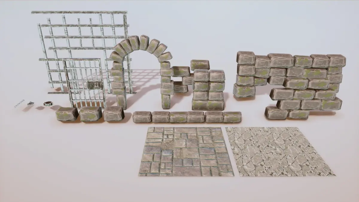 Stylized Medieval Prison Props Kit Low-poly 3D model