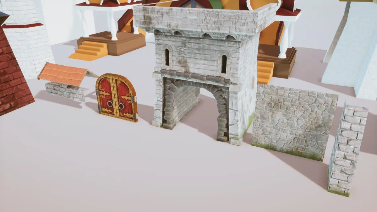 Stylized Medieval Town Props Kit 15 Items Low-poly 3D model