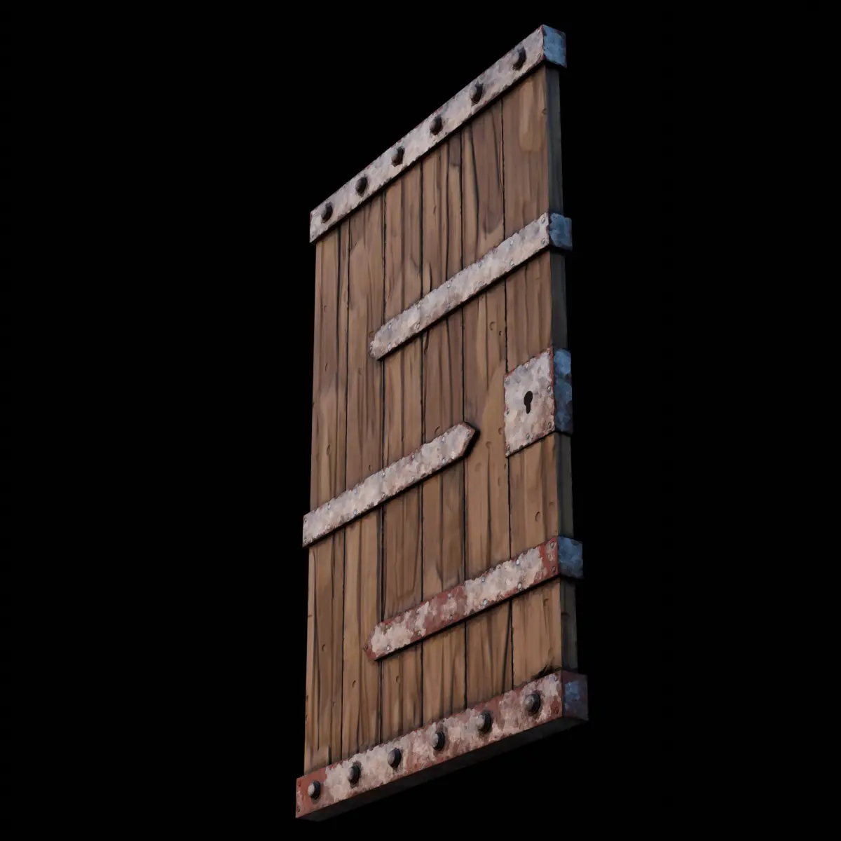This is a *low poly stylized medieval wooden door, featuring a worn and slightly corroded metal frame. Perfect for **fantasy, Dungeons or RPG environments, it combines hand-painted like textures with **game-ready* optimization. It is ideal for Unity, Unreal Engine, or any 3D engine.