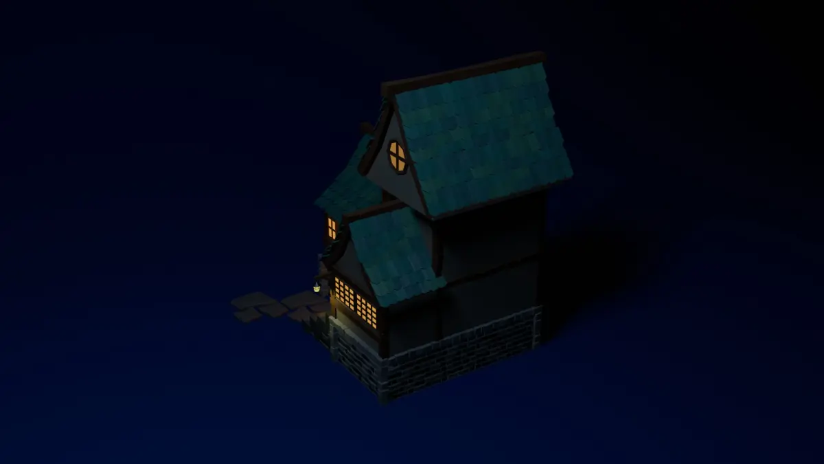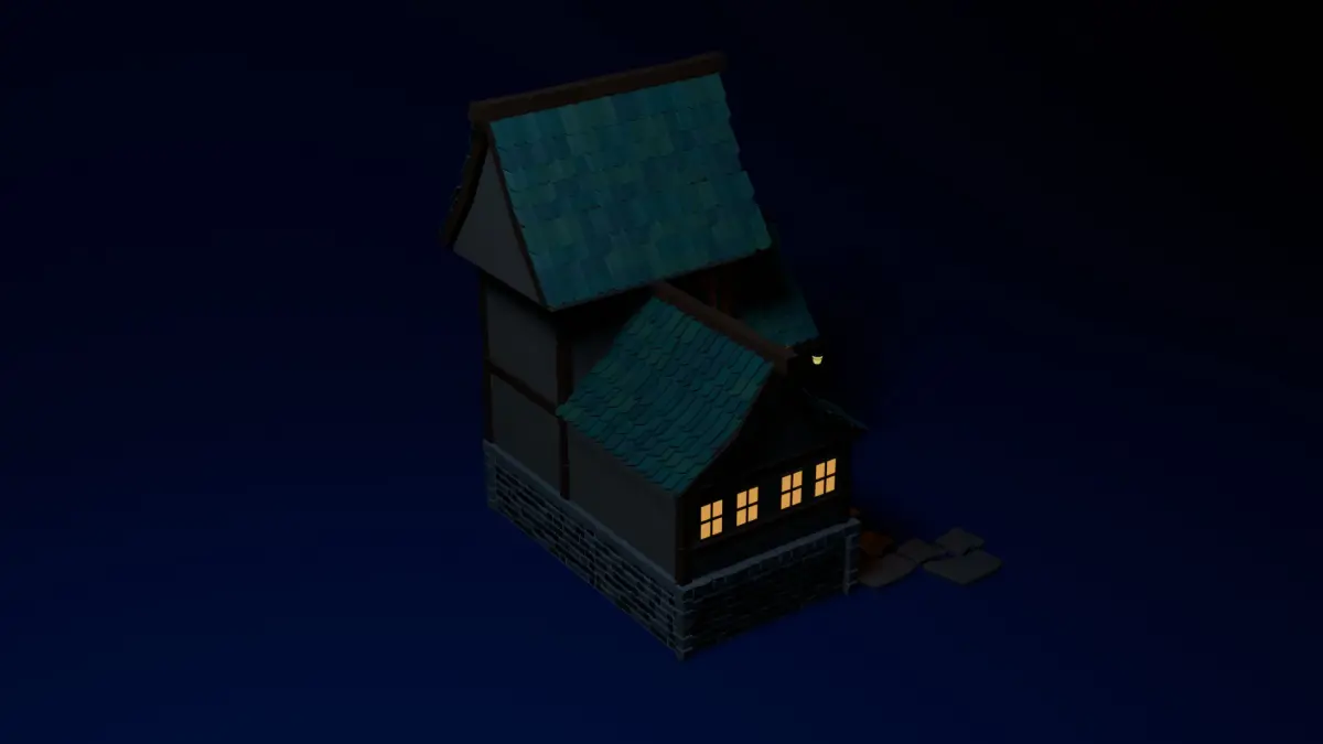 Simple stylized medival house made in Bldener 4.1