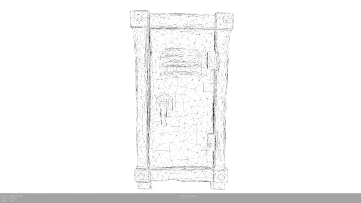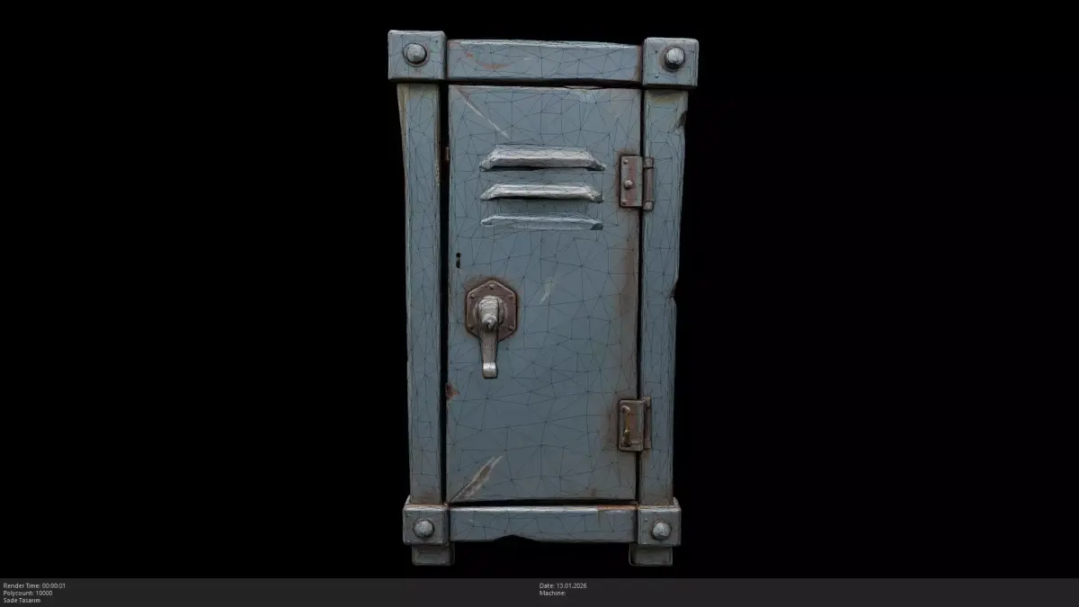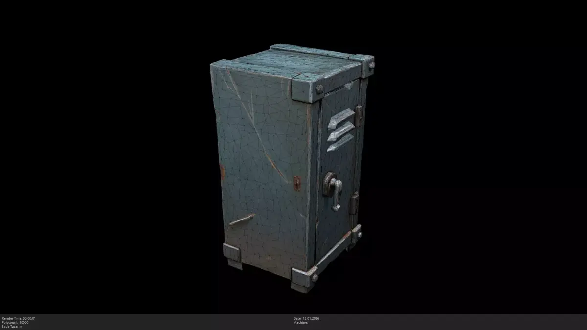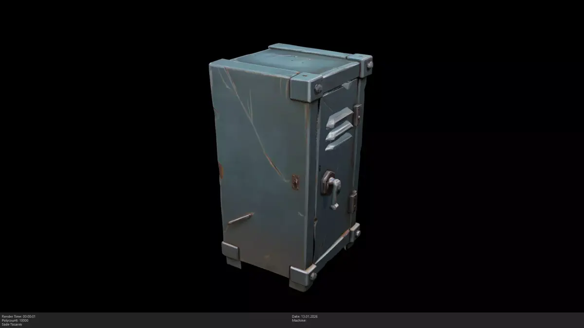 Stylized Metal Locker / Industrial Safe BoxThis is a high-quality, stylized 3D model of a heavy-duty metal locker. Featuring a rugged, industrial design with visible dents, scratches, and a prominent locking handle. This model is perfect for stylized office environments, school scenes, survival bunkers, or as a lootable container in adventure and horror games.