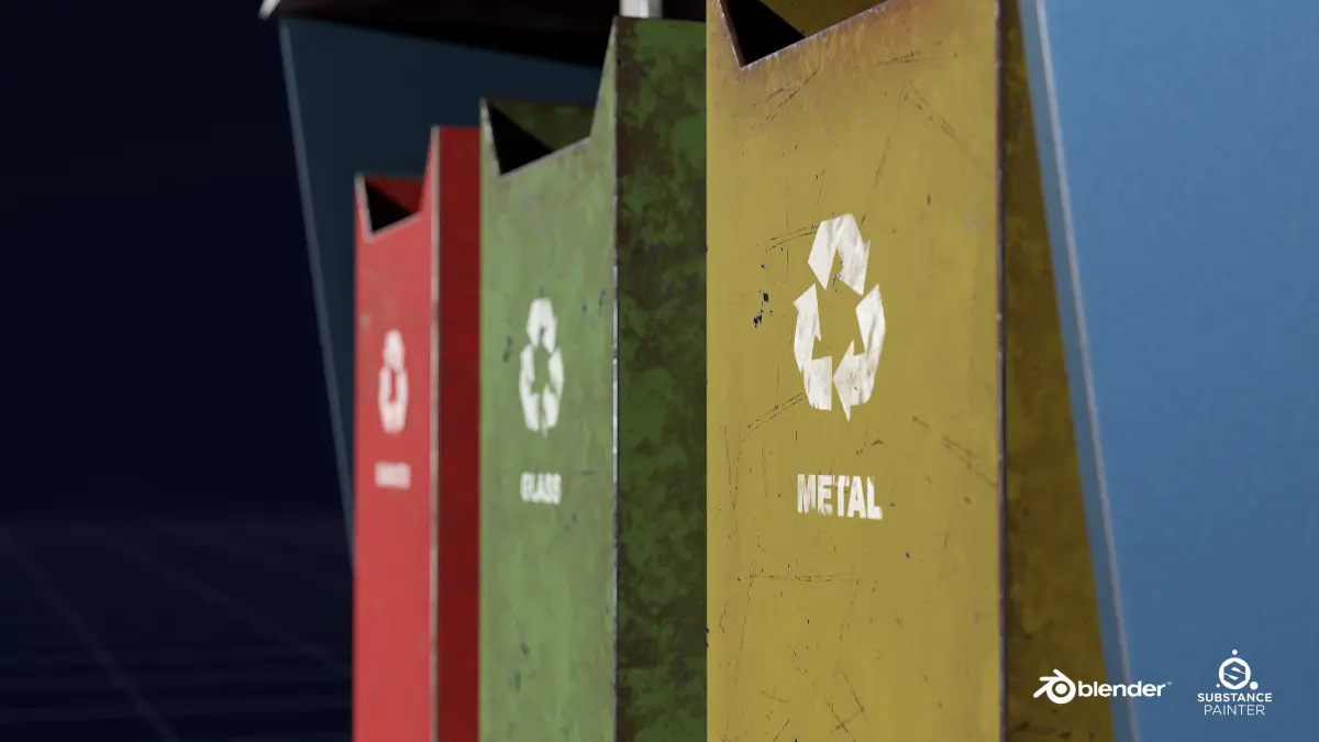 Stylized metallic street triple junk box.Modeled in Blender, textured with Substance Painter. All textures are 2k
