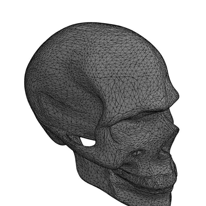 This is a striking, highly detailed 3D model of a stylized human skull, meticulously crafted with a sleek, reflective metallic finish, reminiscent of polished chrome or silver. The model features clean lines and a modern aesthetic, making it a versatile asset for various digital projects. It is perfectly suited for use as a captivating prop or decorative element in game development, adding a unique touch to environmental designs, collectible items, or character customization options. Architects and interior designers can leverage this model for sophisticated architectural visualizations, introducing a bold, contemporary accent to virtual spaces. Its robust design also makes it ideal for augmented reality (AR) and virtual reality (VR) applications, providing an engaging and realistic presence in immersive experiences. Digital artists and animators will find this skull invaluable for creative compositions, visual effects, and cinematic renders. The model boasts a clean, optimized topology, ensuring smooth deformations and efficient rendering, and is fully UV unwrapped for easy texture application. While highly detailed, it is also optimized for real-time applications such as games and interactive environments. Additionally, its solid, detailed structure makes it suitable for high-quality 3D printing, allowing for the creation of unique physical ornaments or collectibles. Supported file formats include GLB, OBJ, STL, ABC, DAE, FBX, USD, and PLY, ensuring broad compatibility across various 3D software and engines. This asset is prepared with PBR (Physically Based Rendering) textures for realistic material representation, delivering stunning visual fidelity in any lighting condition.