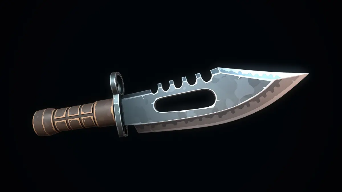 Low-poly 3D model of a Stylized Military Knife doesn't contain any n-gons and has optimal topology. The archive includes such 2K textures: base color map, metalness map, normal map (OpenGL), and roughness map. Images and video were rendered in Marmoset.