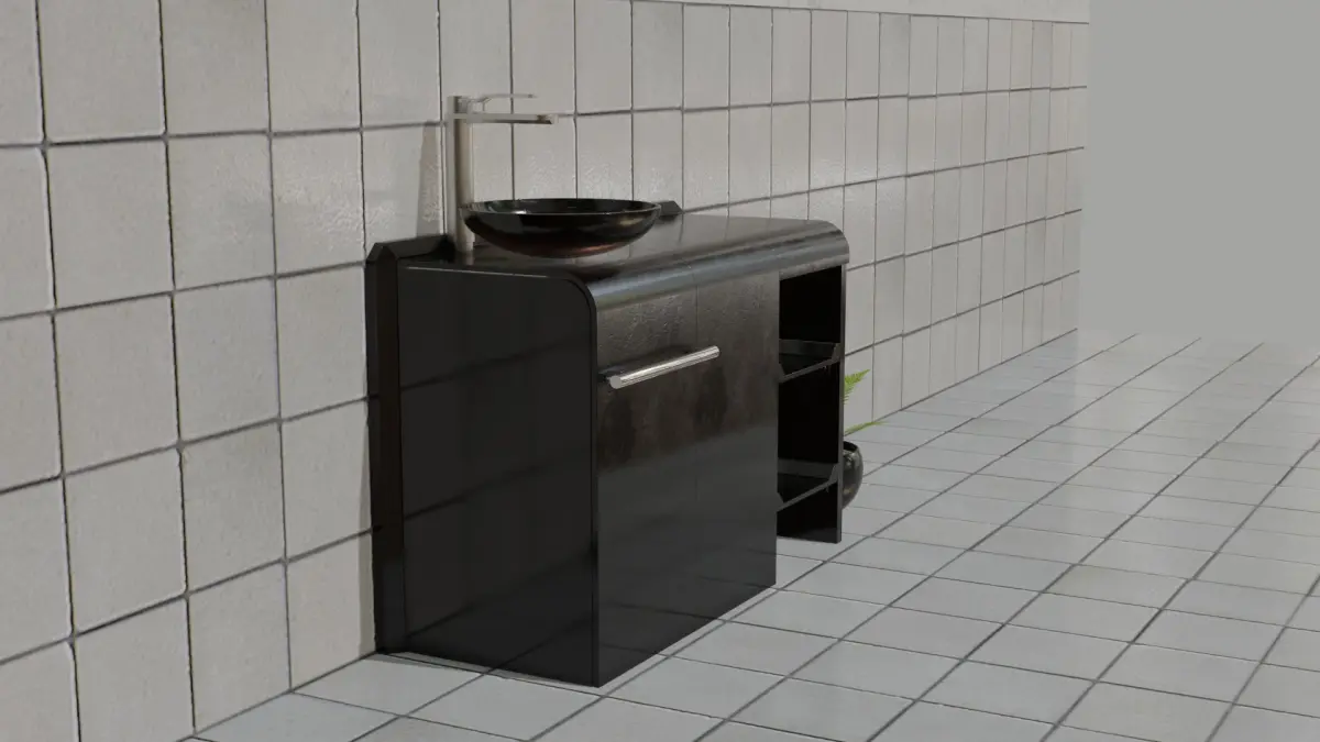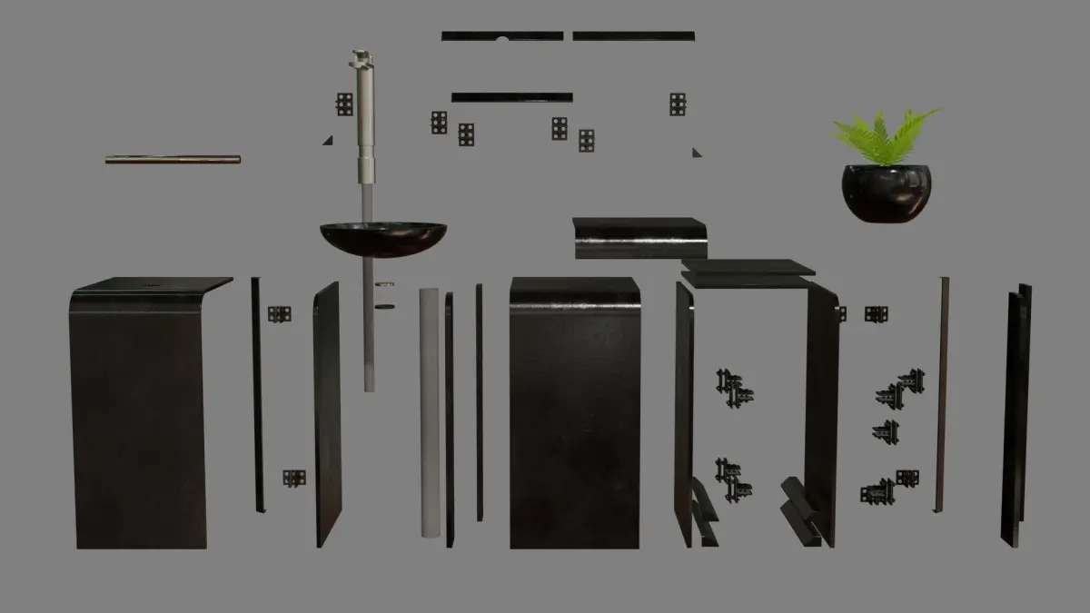 What includedmodular sink with rigged and animated tap fern plant with potfloor or wall not included (tiled floor and white wall)