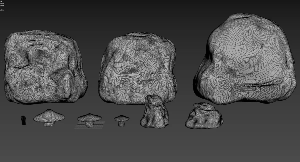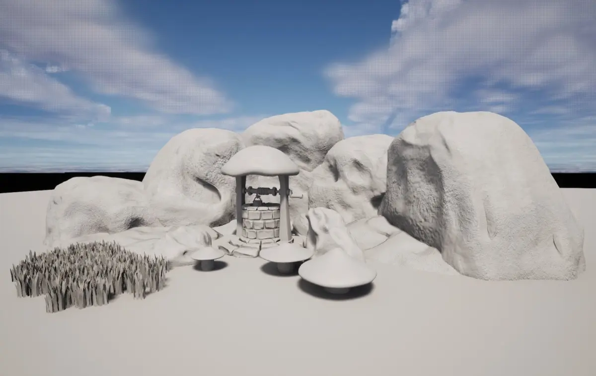 This is a small fantasy pack that includes Grass, a well, rocks and mushrooms. The style is dark and works ina variety of lighting scenes. You can mix and match these asstes, the rocks can be added together or rotaed to make a cave. The grass can be added to a brush on unreal engine and painted across the landscape.