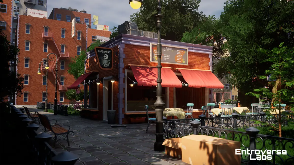 Fully Modular Design – Build detailed exteriors and interiors using modular walls, windows, doors, rooftops, and other city elements.Procedural Building Blueprint – A powerful blueprint system enables you to generate buildings procedurally with modular meshes, saving you time and effort.Editable Materials – Customize materials and textures directly in Unreal Engine to match your unique stylized vision.Cafe Props & Interior Assets – Enhance your world with high-quality cafe elements like tables, chairs, counters, and decorations for a lived-in feel.Optimized for Performance – Every asset includes LOD (Level of Detail) support and custom collision meshes, ensuring smooth performance.Unreal Engine Compatible – Fully tested and optimized for the latest Unreal Engine versions, guaranteeing seamless integration. Developed over 6 months, this pack is perfect for game developers, environment artists, and level designers who want to create immersive, stylized cityscapes. Bring your vision to life with Entroverse Studios’ signature quality!