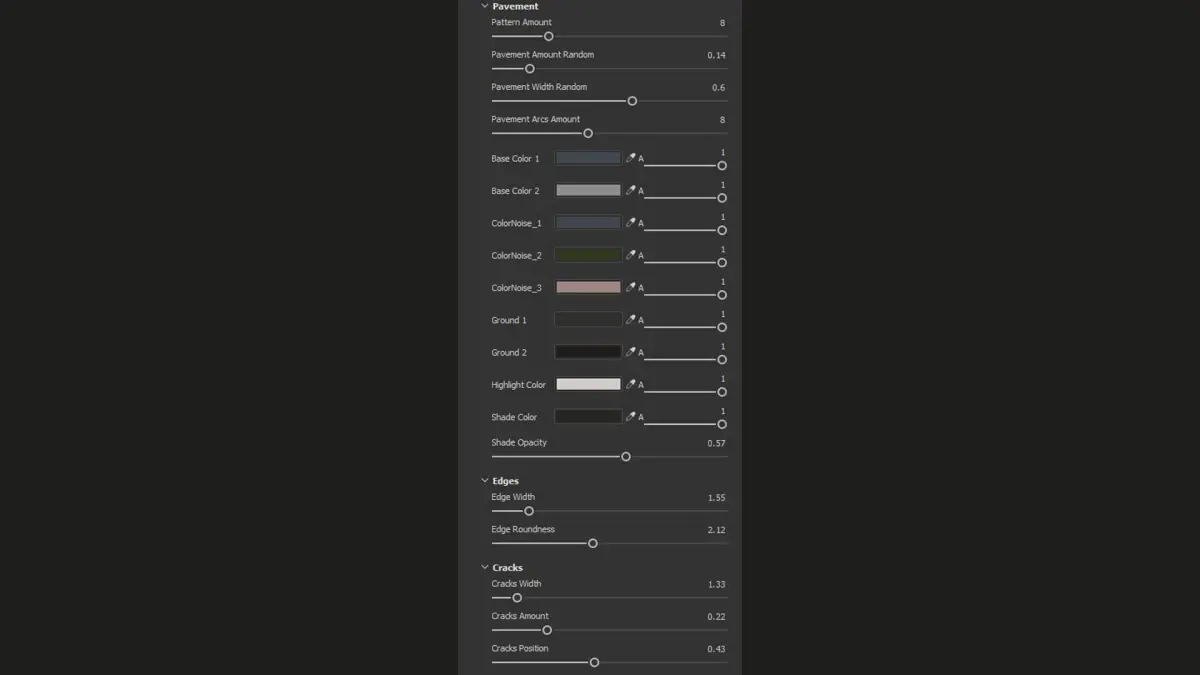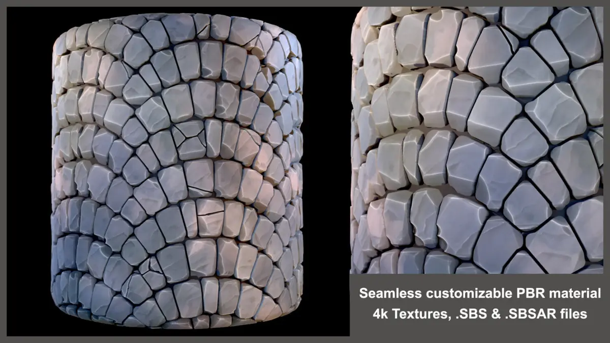 - Seamless stylized pavement PBR material was created in Substance Designer 14.1.1