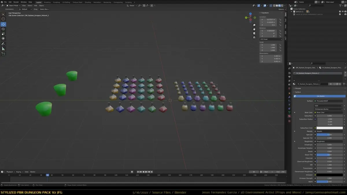 - *Included two PDF readmes. One for general pack contents and another for batch 11 potion opacity fix for FBX file exports [takes less than a minute].