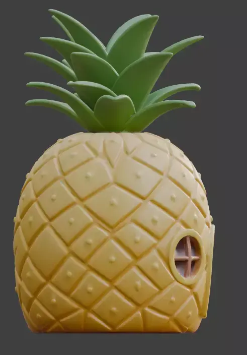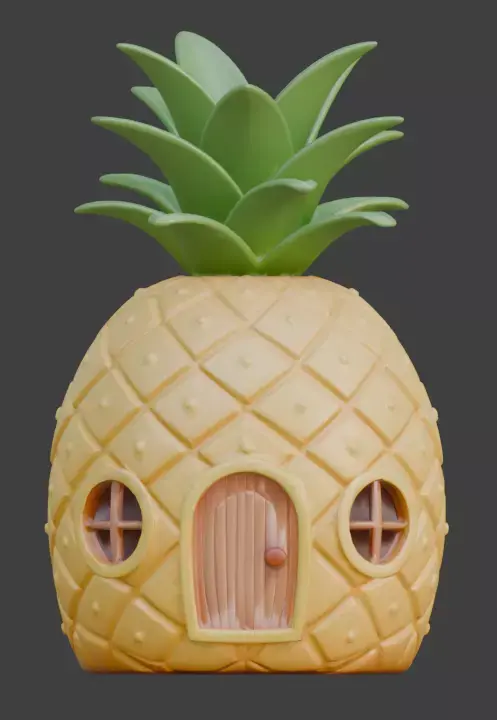 This premium 3D model features a vibrant and whimsical pineapple-shaped house designed with a playful cartoon aesthetic.