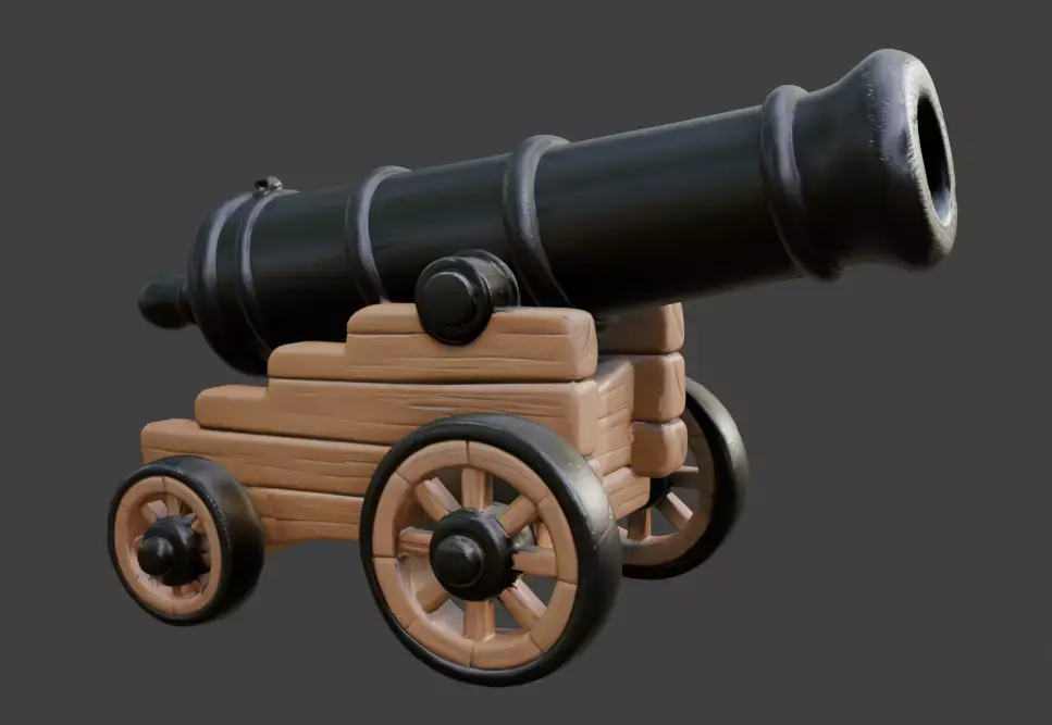 Stylized Pirate Cannon 3D ModelDescriptionThe Stylized Pirate Cannon is a high-quality 3D model designed with heroic proportions, perfect for maritime adventure and fantasy-themed game environments.