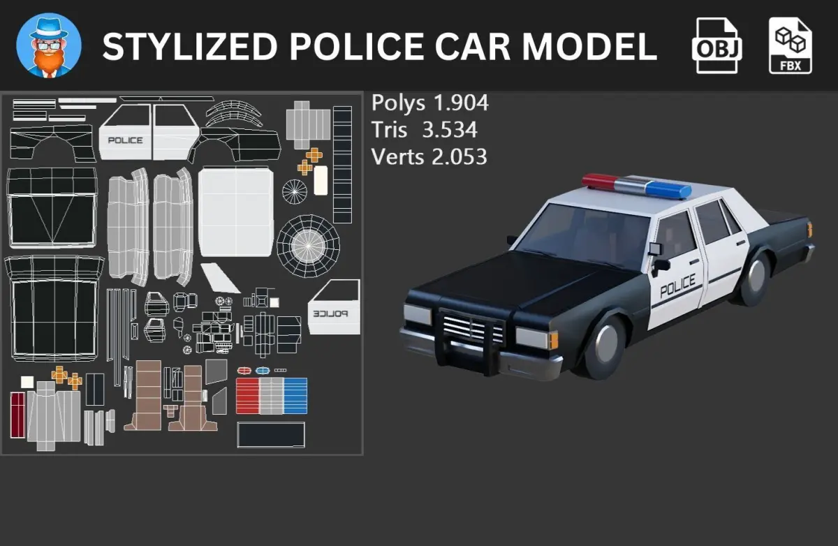 Stylized Police Car 3D Model