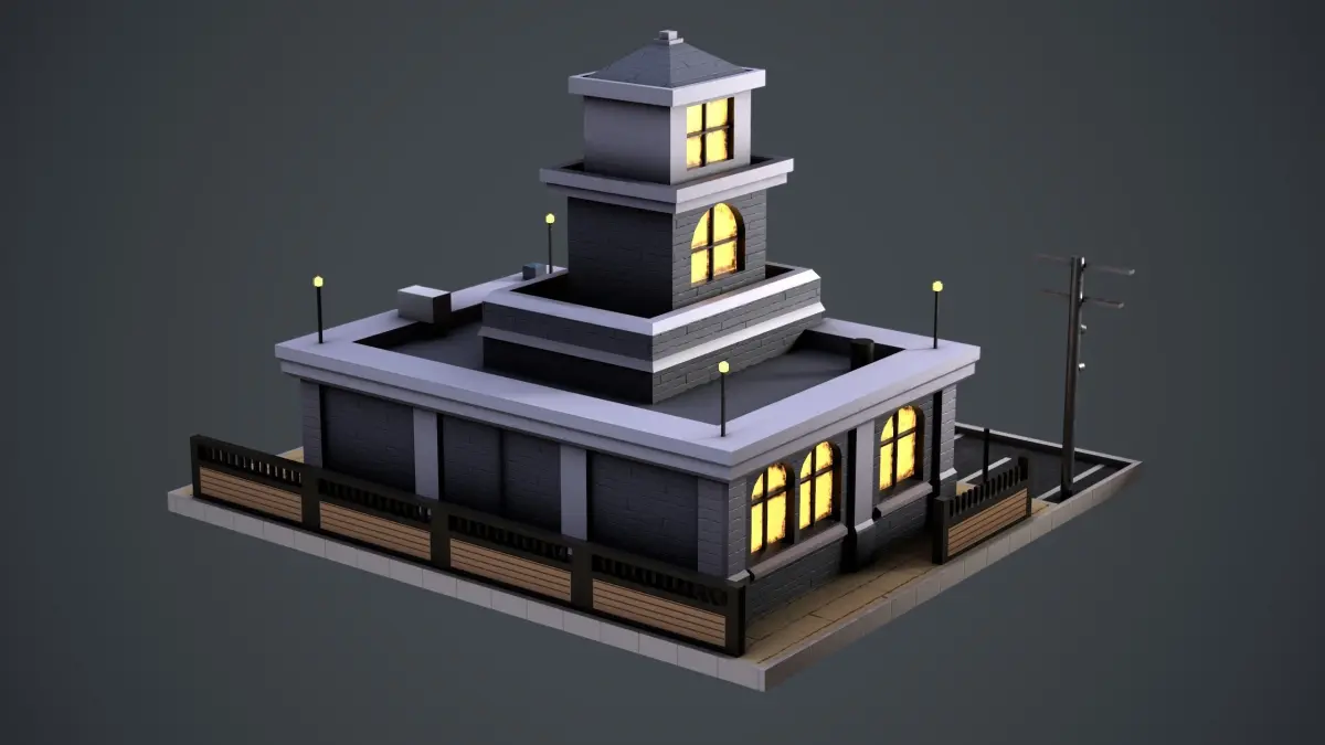 Stylized Police Station. Ready for import into game engines(Unreal, Unity, etc.).