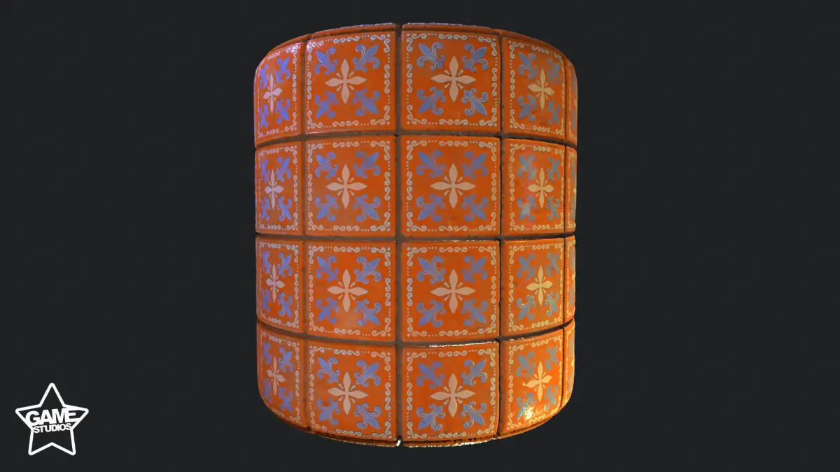 Stylized Portuguese Tiles Material 05 was created in Substance 3d Designer and rendered in Marmoset Toolbag.