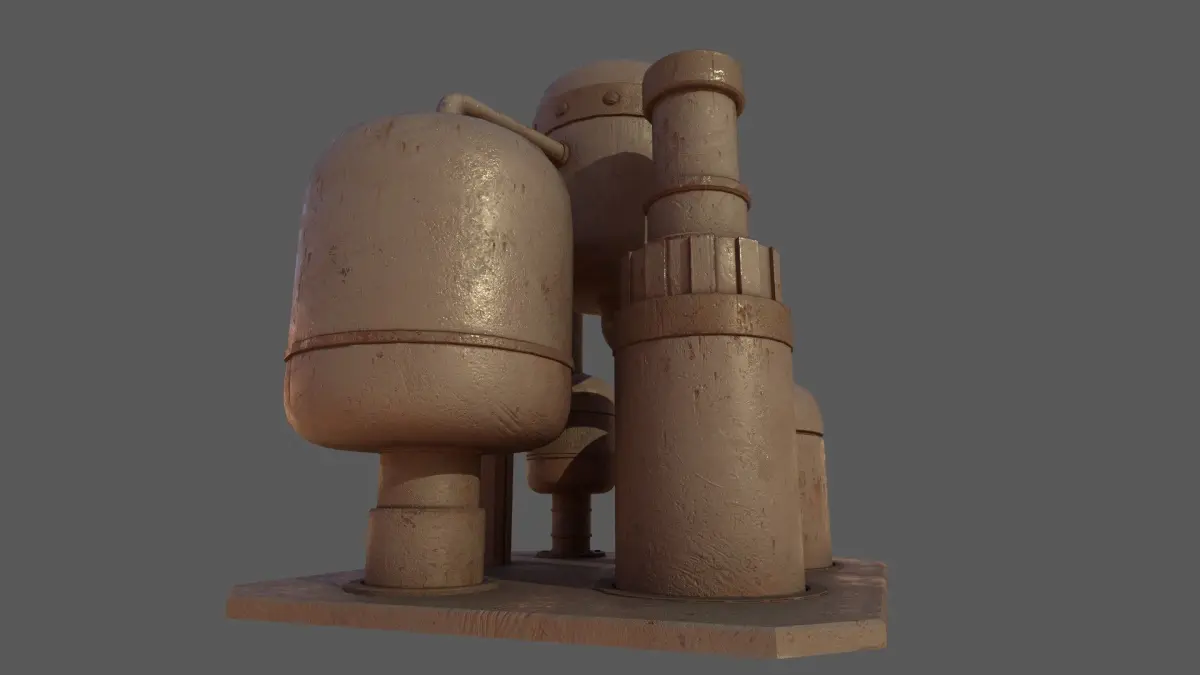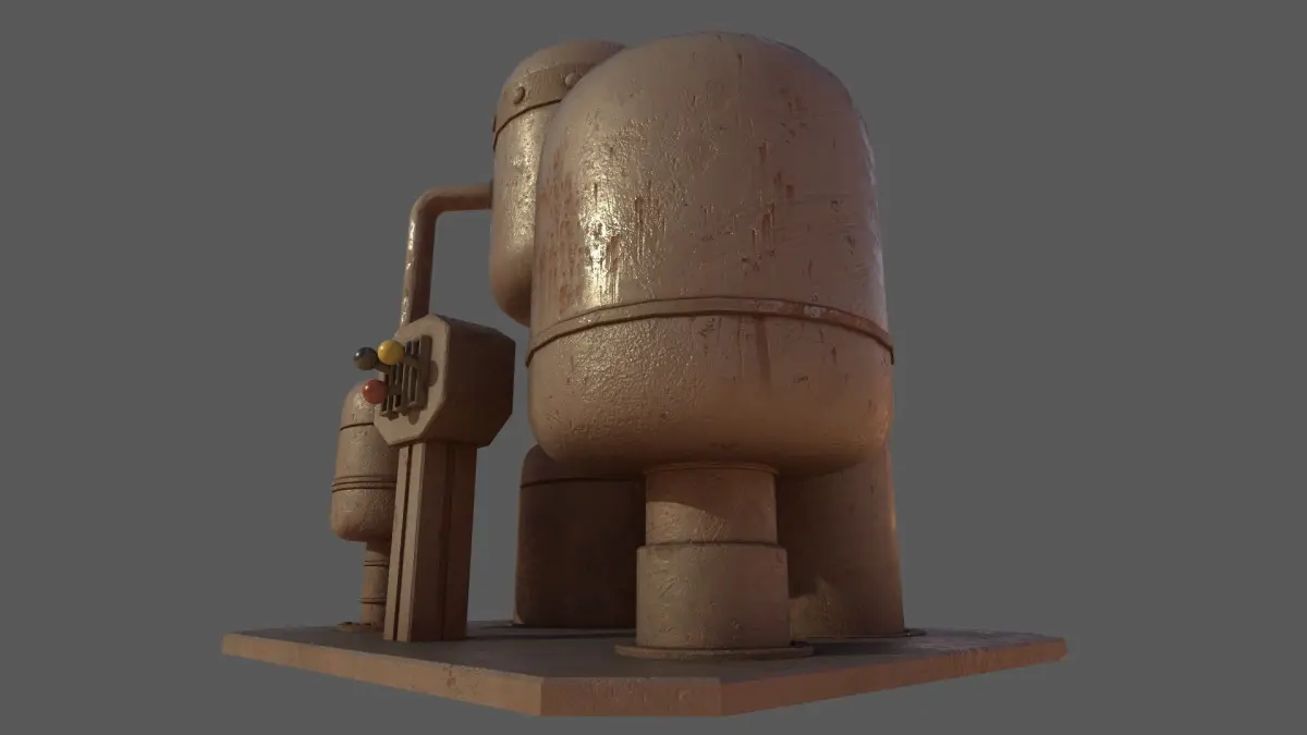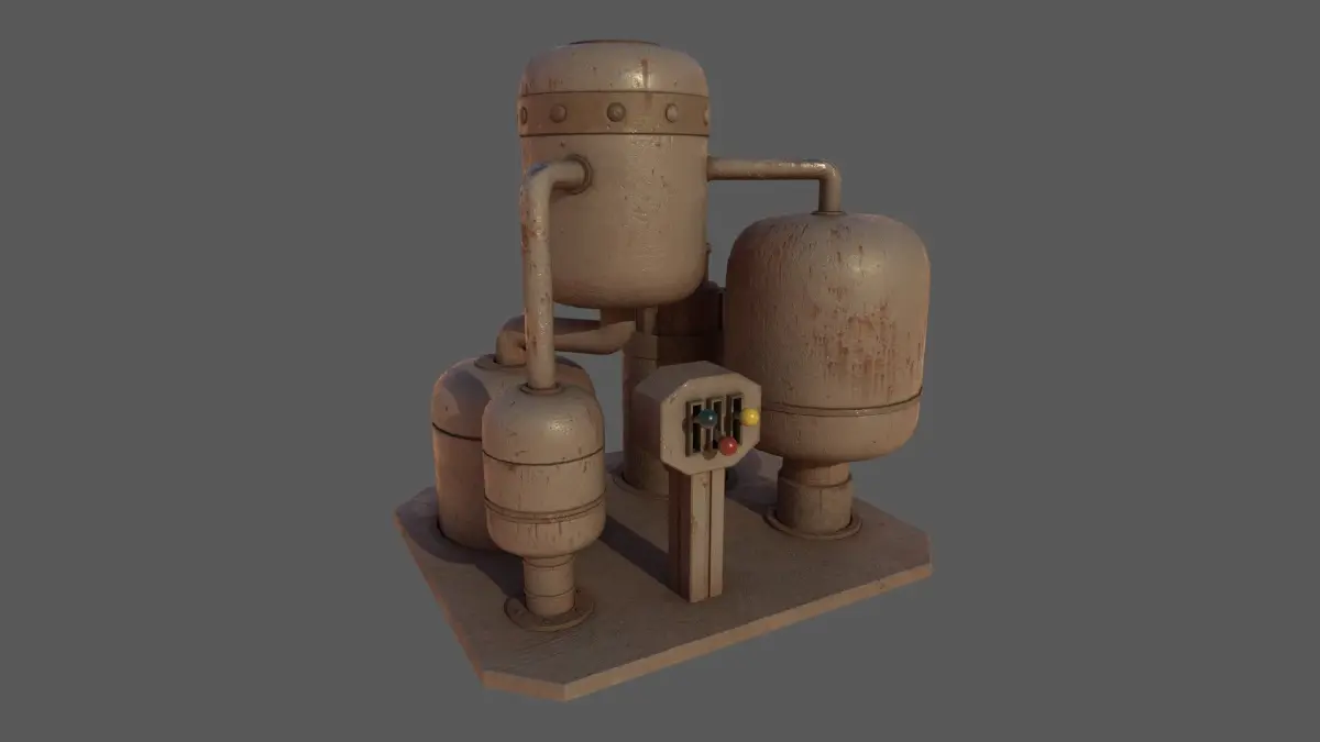 Stylized Retrofuturism Machinery - Tank System model made in 3ds Max 2022 and textured in Substance Painter. No plugins/addons were used, weighted normals modifier is applied