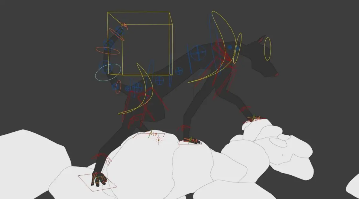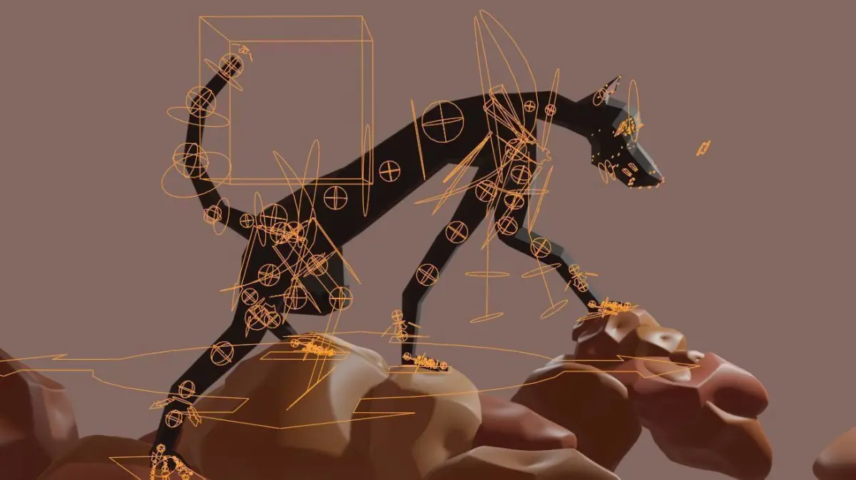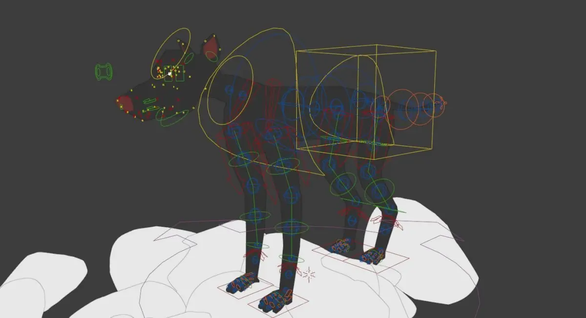 This is a rigged, and animated 3d low-poly wolf. It is very stylized, leaning more on the lanky side of a wolf. The rig has 190 bones, and 290+ controls if.