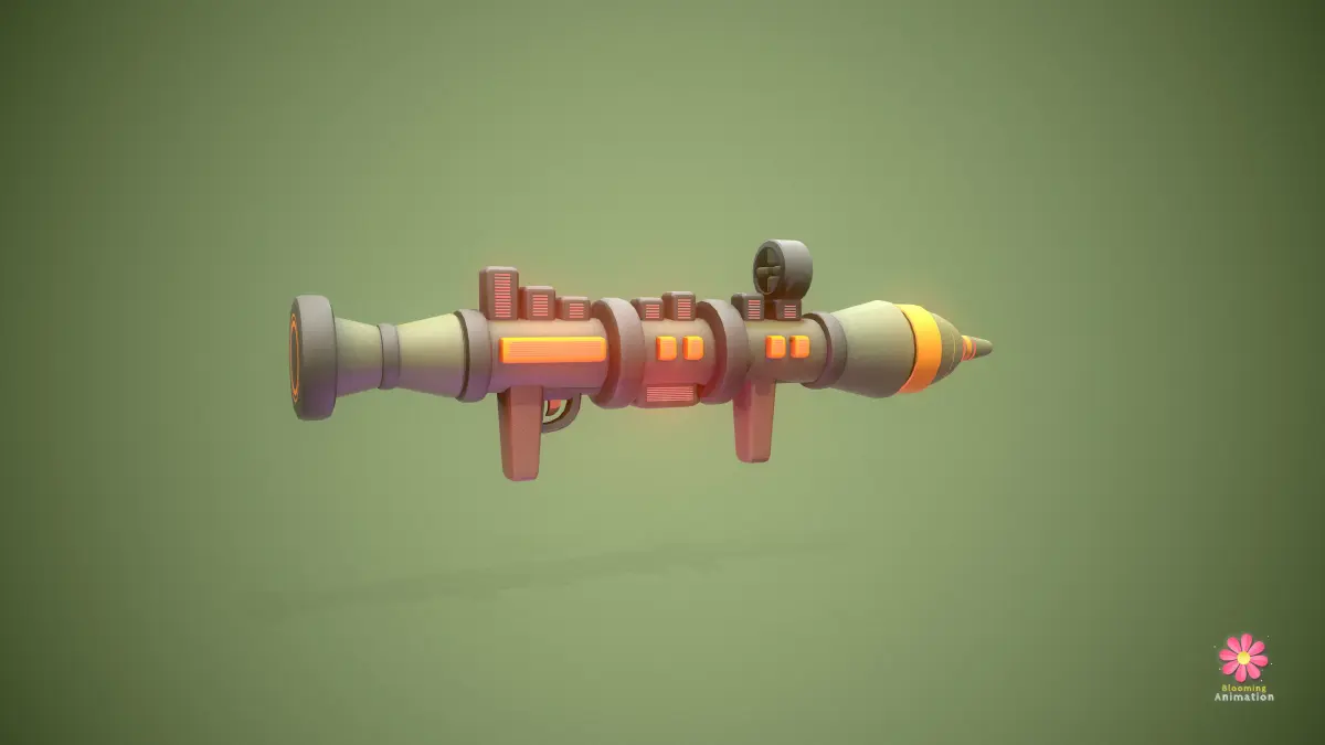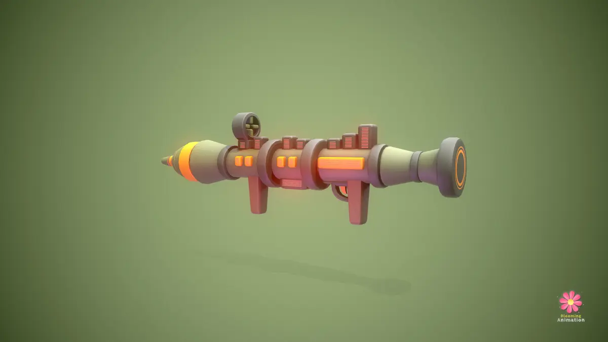 Cartoony 3d model of rocket launcher that destroys enemies and obstacles.