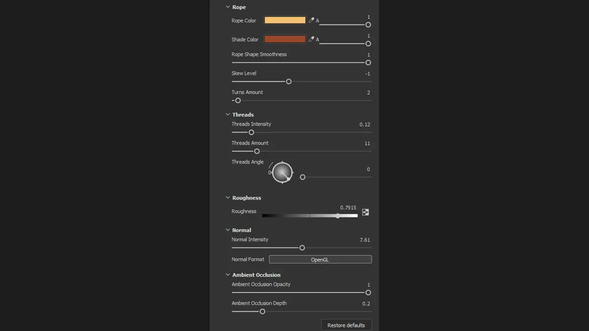 - Seamless stylized rope PBR material was created in Substance Designer 14.1.2