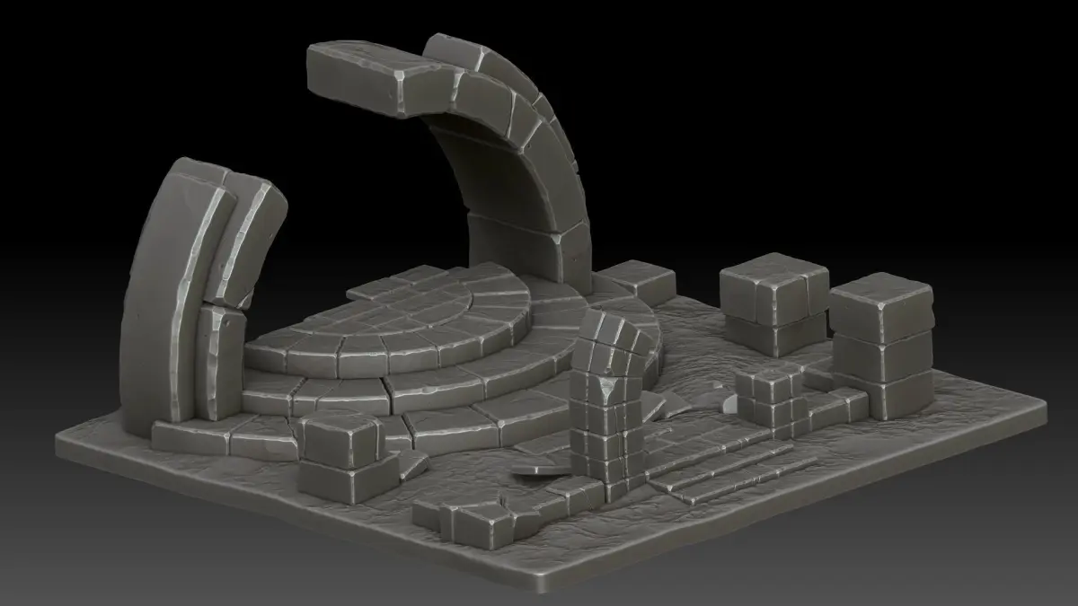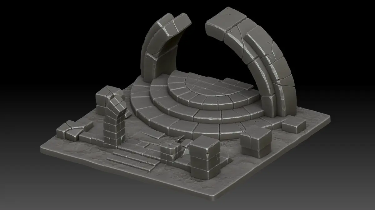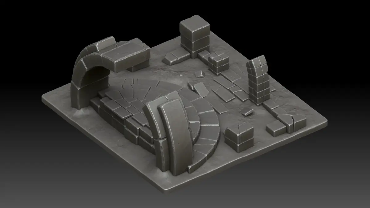Stylized ruins.. Zbrush(ZTL 2023.1.2)..FBX..OBJ..Polygons - 3712000 ml.. Render Zbrush.. High poly.. No material, No texture..