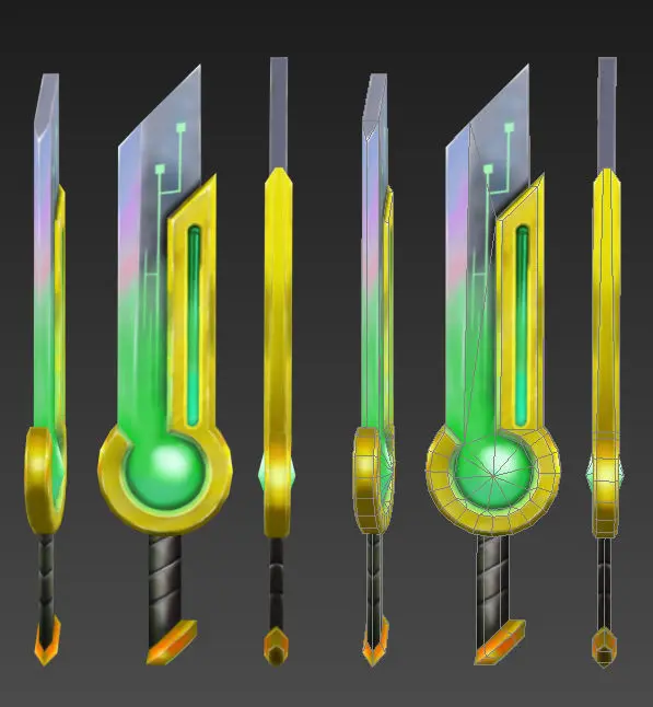 A Stylized Sci-Fi Sword handpainted texture made as a Practice with 3DS Max original concept by Oziel Leal and I had fun making some variations I include the 3DS Max, FBX and OBJ File the Texture is 512 x 512 Diffuse and the poly count are Stylized Sci-Fi Sword V1 Tris 312, Verts 162, Polys 182 Stylized Sci-Fi Sword V2 Tris 428, Verts 221, Polys 242 Stylized Sci-Fi Sword V3 Tris 348, Verts 181, Polys 198 Stylized Sci-Fi Sword V4 Tris 568, Verts 294, Polys 334 Stylized Sci-Fi Sword V5 Tris 752, Verts 388, Polys 432 Stylized Sci-Fi Sword V6 Tris 640, Verts 332, Polys 364 Ready for a game engine unity or unreal If you need 3D Game Assets or STL files I can do commission works.