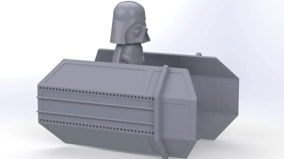 This is a stylized science fiction character with a compact starfighter, designed for creative use in sci-fi environments, concept art, or 3D printing. The model was developed in SolidWorks and exported in multiple formats to ensure wide compatibility with various platforms and workflows.