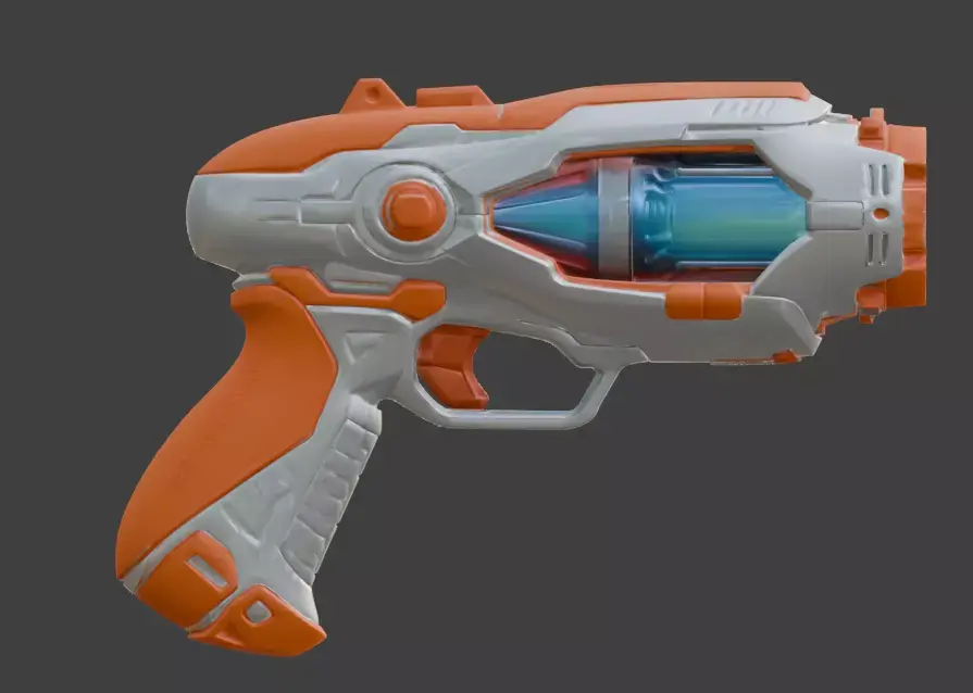Asset Tagssci-fi blaster, 3D weapon asset, energy pistol, stylized design, glowing core, high-contrast livery, game-ready prop, futuristic gear, PBR textures, hero asset