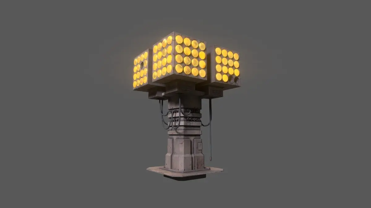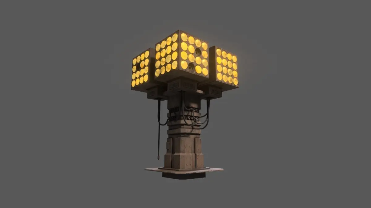 - Whole column is unwrapped to a single 4k UV map, wires are unwrapped to 1k map, lamps are unwrapped to a 2k map