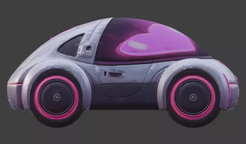 Tagsvalentine car, hover car, 3d model, sci-fi vehicle, stylized 3d, game ready asset, glowing heart, neon pink lights, romantic futuristic design, cartoon vehicle, 3d prop, floating car, futuristic design, mascot design, 3d toy, casual game, festive asset, love theme, social simulation, digital sculpture