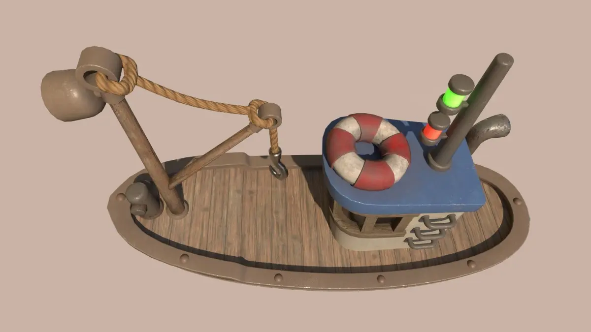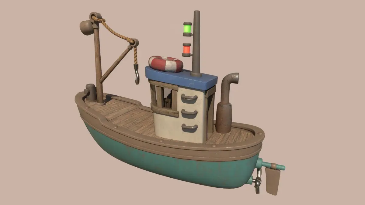 Simple low-poly game-ready Stylized Simple Fishing Boat model made in 3ds Max 2023 and textured in Substance Painter