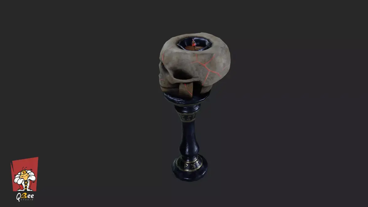 A dark, gothic-inspired skull candle holder designed to add an eerie ambiance to any setting. Perfect for Halloween, fantasy, or mystical environments.
