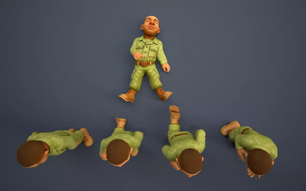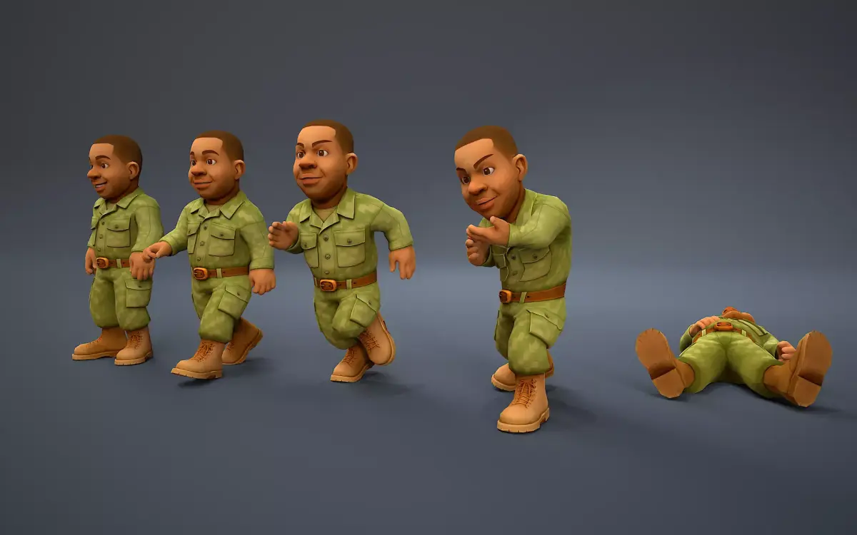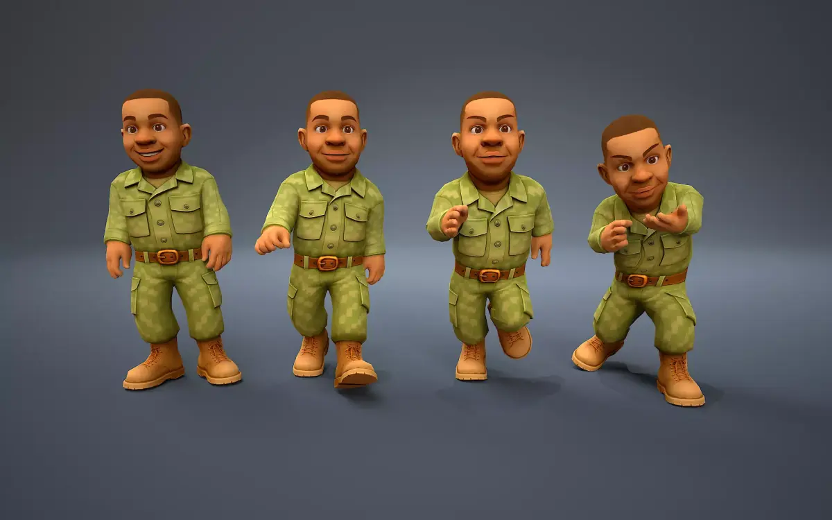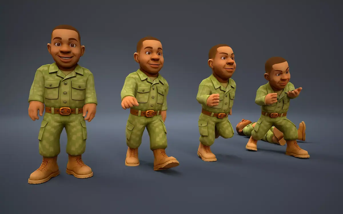Stylized soldier with a low-poly mesh for maximum optimization.