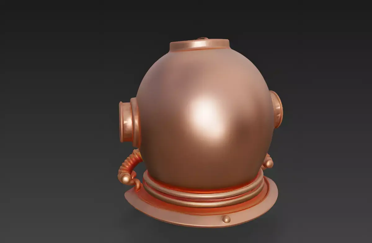 Polished Copper Metallic FinishThe helmet is finished in a uniform, high-gloss copper metallic texture. This vibrant and professional palette emphasizes the model's smooth, spherical proportions and ensures the asset serves as a highly visible focal point within a professional cartoonish art style.