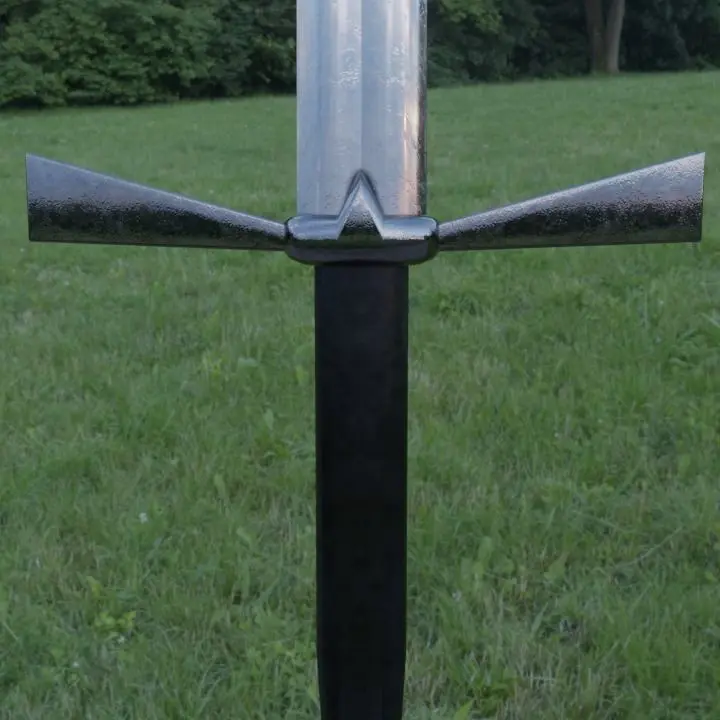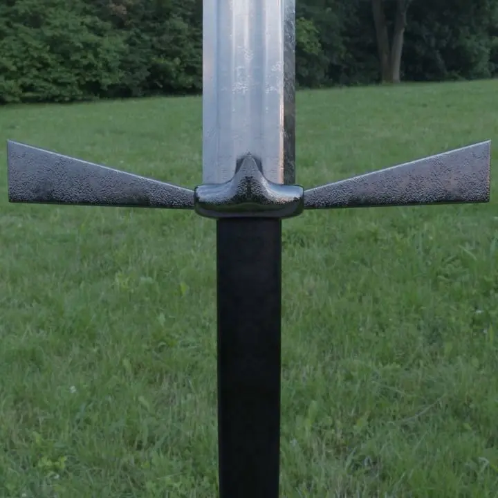 a strong steel blade, with a strong guard and a comfortable handle ready to fight in a medieval duel or war and well suited to the armor of a proud knight