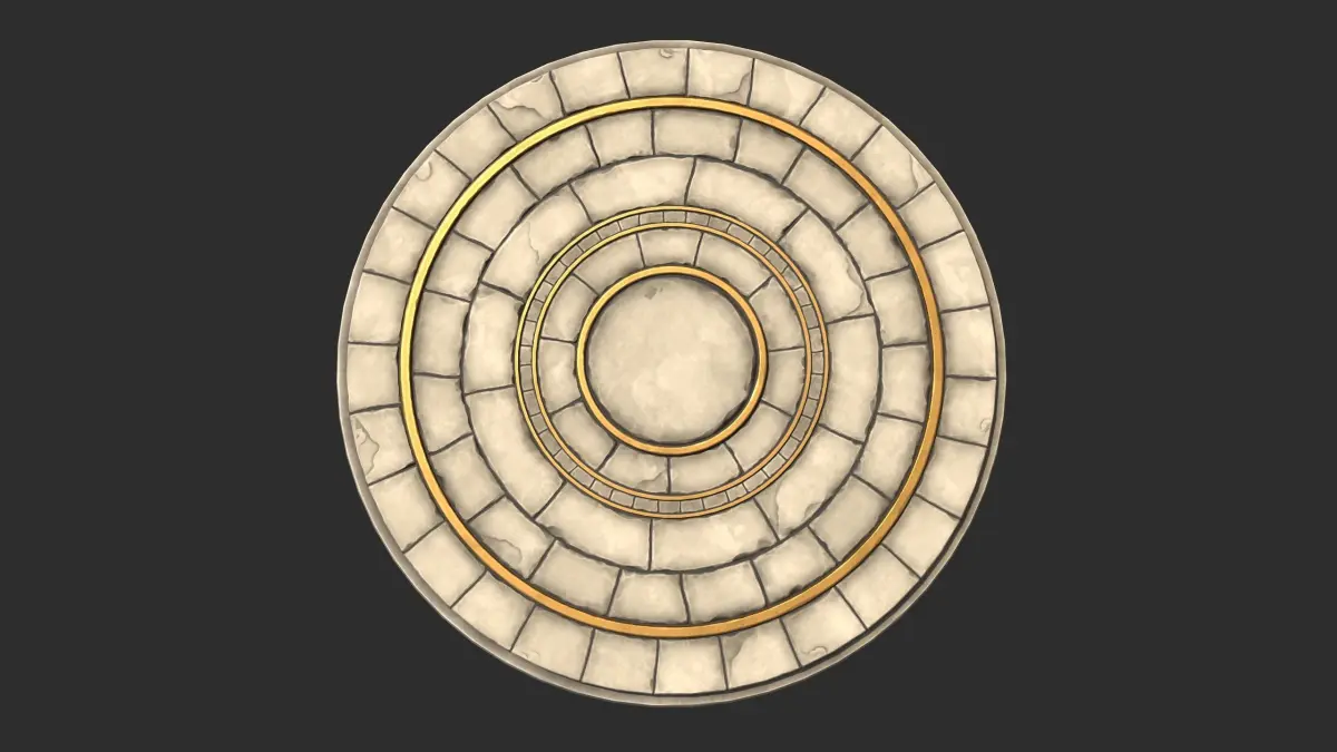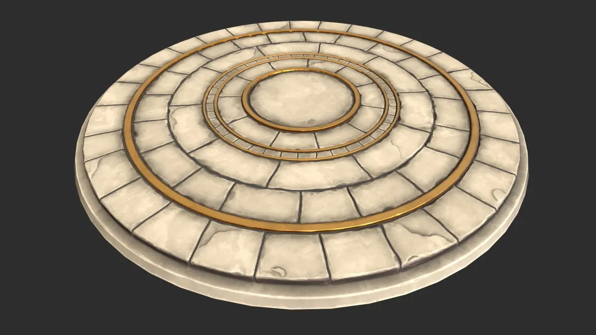 Stylized stone floor circle with gold inlays, great for usage in games and other realtime applications, such as VR, XR etc.