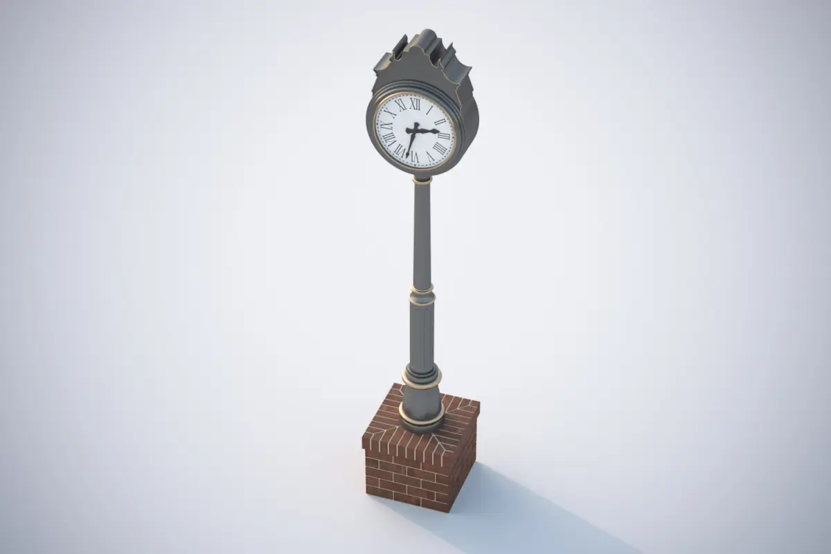 This 3D model includes stylized to old street pointer clock. The whole model of the pole with the upper clock placed on a square base made of bricks.Model prepared for 3d architectural visualisations and other graphic works.