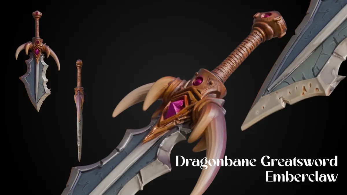 This sword is Lv3 from the 10-part Dragonbane Greatsword Pack, where each sword level represents progression in power and style.Explore the full sword evolution series here: https://www.cgtrader.com/3d-model-collections/stylized-fantasy-sword-pack-dragonbane-greatsword