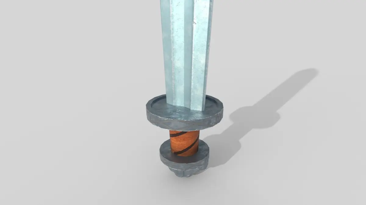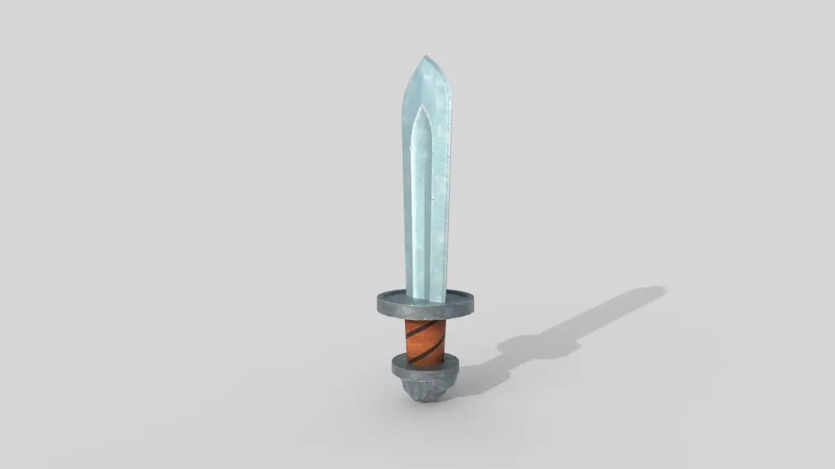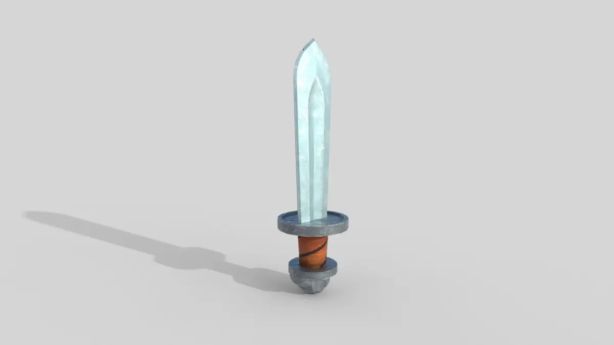 A 3D model of a stylized sword.