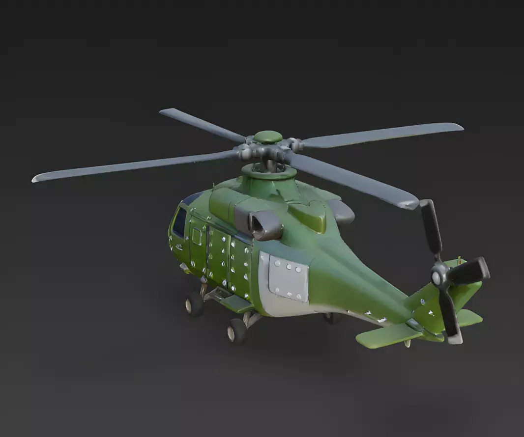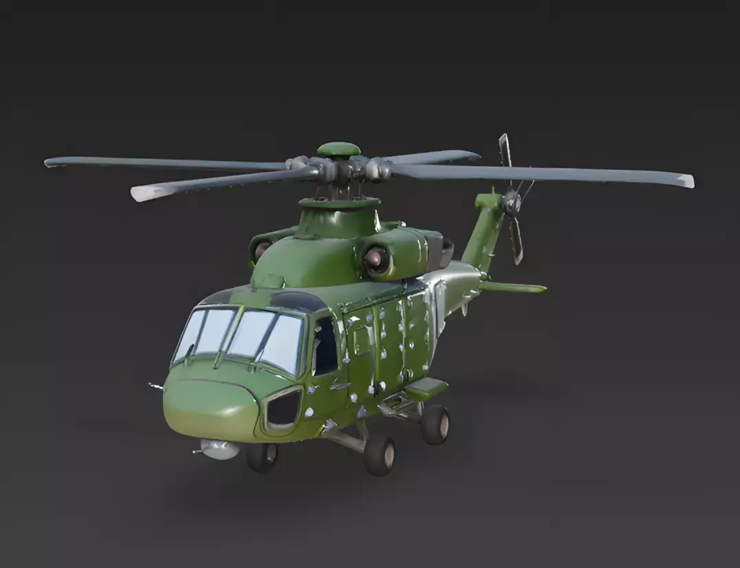 The Overall ConceptThis 3D model represents a heavy-duty tactical military helicopter designed with a stylized, slightly chibi aesthetic. It features a robust, rounded fuselage and exaggerated mechanical components that provide a powerful yet toy-like appearance, perfect for stylized combat games.