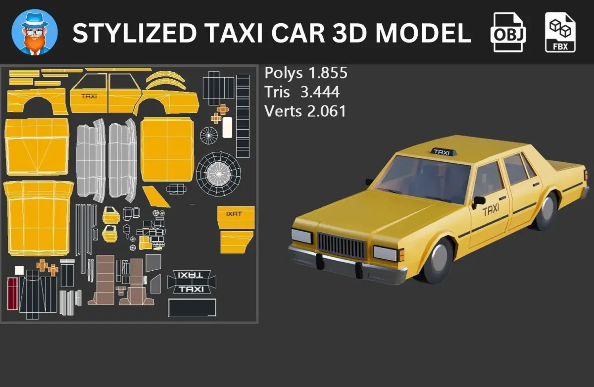 Stylized Taxi Car 3D Model