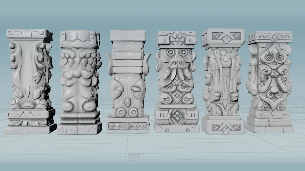 Transform your space with this stunning collection of 6 unique stylized tiki totems, perfect for 3D printing enthusiasts and tiki culture lovers alike. Each totem features intricate carved details inspired by traditional Polynesian design but reimagined with a modern, stylized aesthetic.Key Features