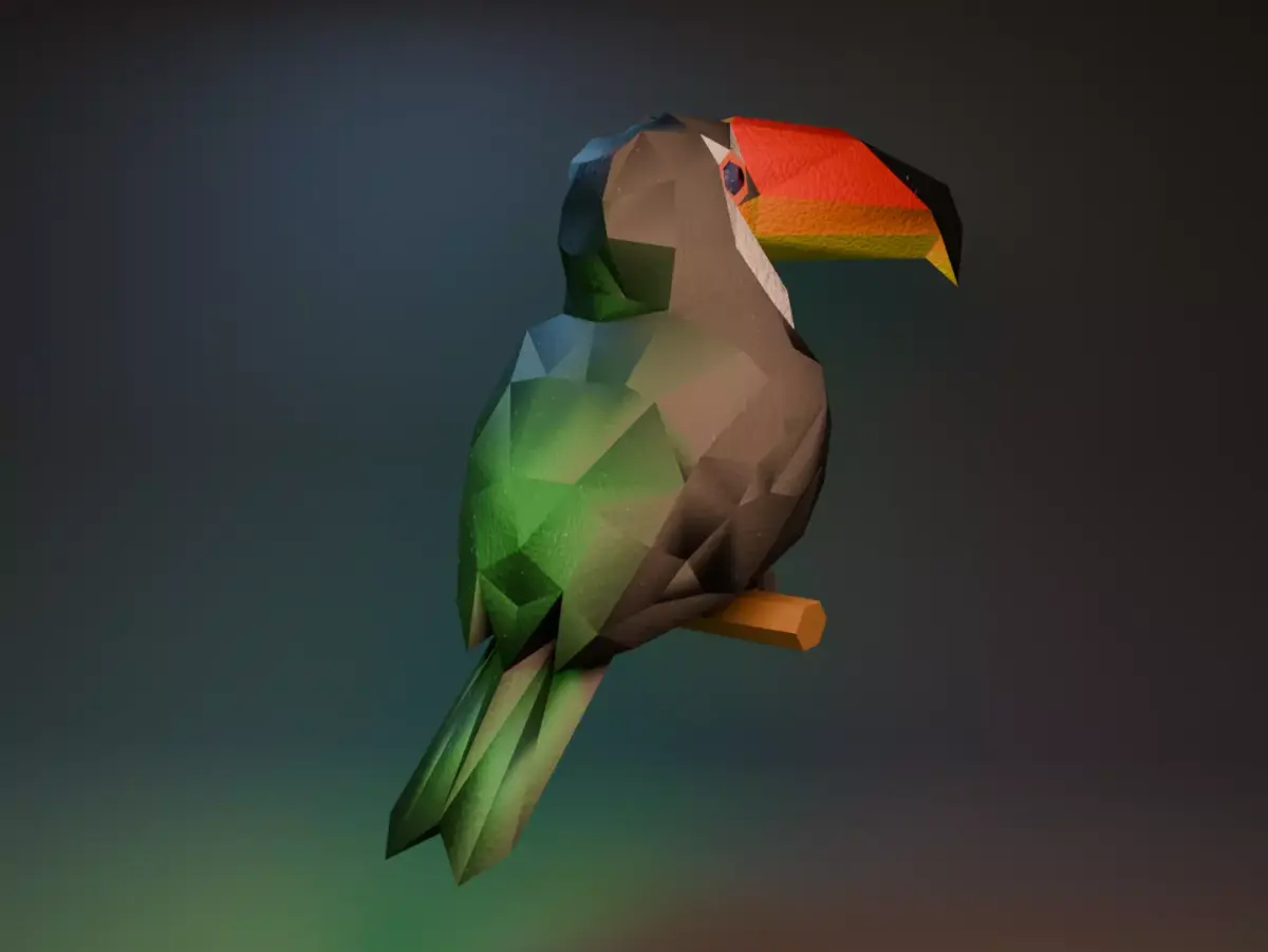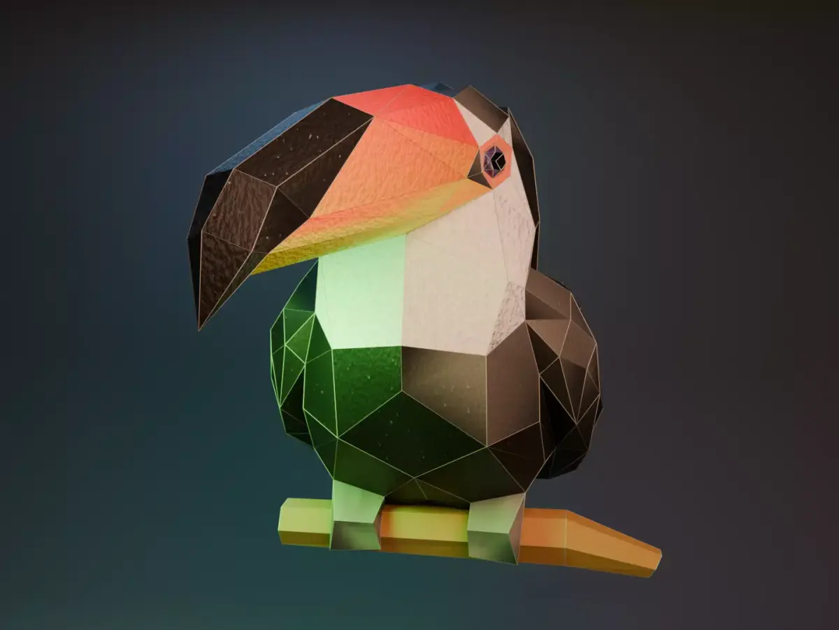 This is a stylized, game-ready 3D model of a tropical toucan, created with clean topology and fully procedural materials — no image textures used. Ideal for games, real-time environments, stylized scenes, and tropical settings.Features: