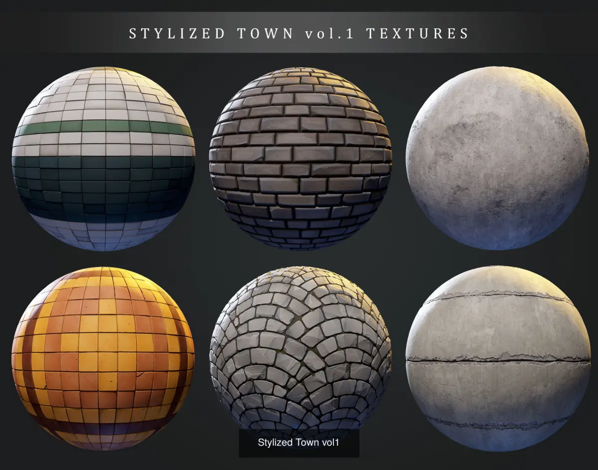 40 Stylized Town materials such as brick, metal, wood, asphalt etc.These materials are well suited for your stylized projects related to towns, houses.