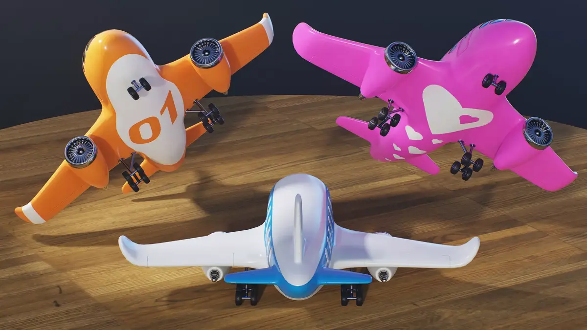 The stylized toy aircraft is available in three color options: Pink, White-Blue, Orange. The model itself consists of two parts: the glider and the chassis. And by removing the chassis, you can get a clean plane for flights. Three sets of PBR, 4K textures.