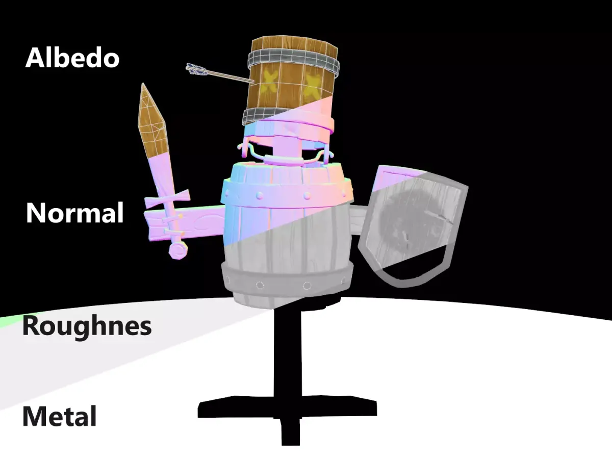 PBR: Base Color (Albedo). / Metallic. / Roughness. / Normal.(OpenGL/DirectX) / Height.