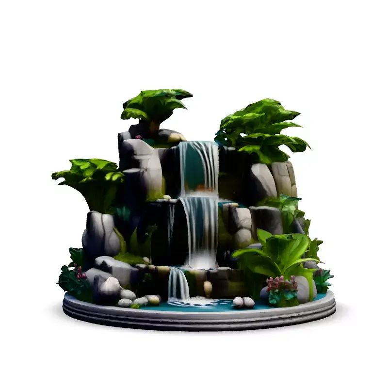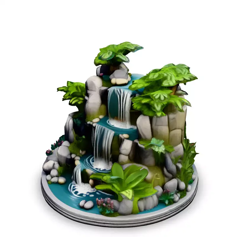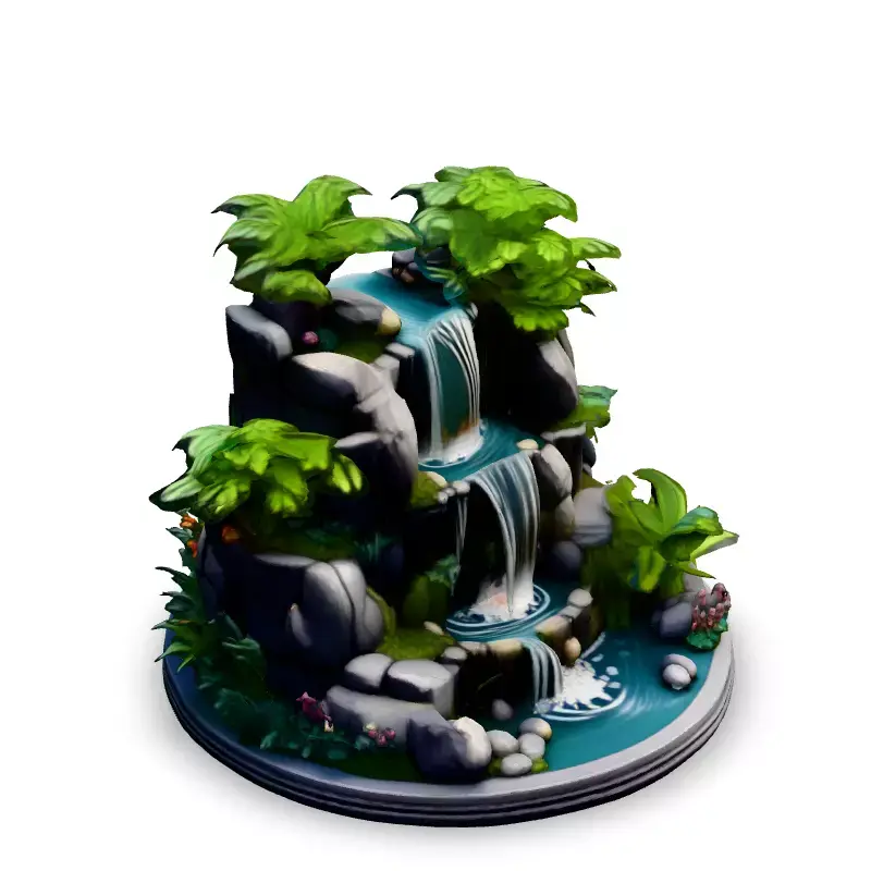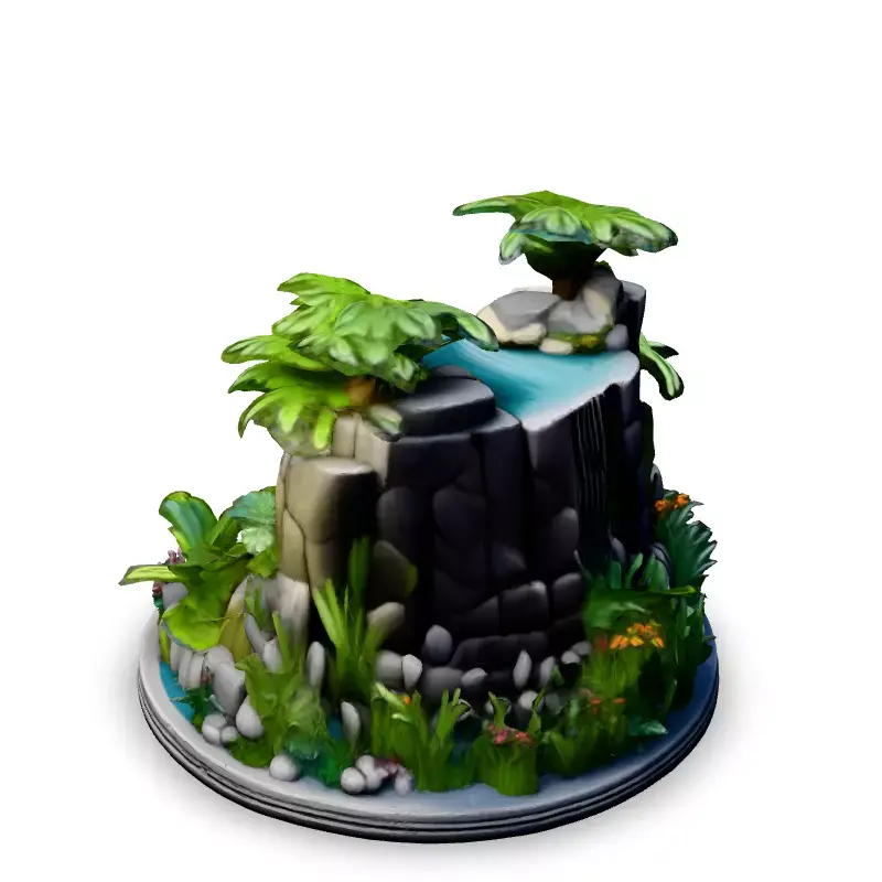 This 3D model features a stylized tropical waterfall diorama, perfect for adding a touch of paradise to your games, AR experiences, or architectural visualizations. Ideal for game developers seeking optimized assets, or for artists creating captivating digital scenes. The model includes detailed rocks, lush tropical foliage, and cascading water with realistic foam effects. Available in multiple file formats (GLB, OBJ, FBX), the waterfall diorama is optimized for real-time applications while retaining enough detail for high-quality renders. Key features include a low-poly count, clean topology, UV unwrapped meshes, and PBR textures for realistic lighting and shading. This model is ready to be imported into your projects and can be easily integrated into various game engines or 3D software. Whether you're building a tropical island, a hidden jungle oasis, or a serene garden, this waterfall diorama will bring life and tranquility to your virtual worlds. It's also suitable for static renderings in architectural scenes or as an eye-catching element in digital art projects.