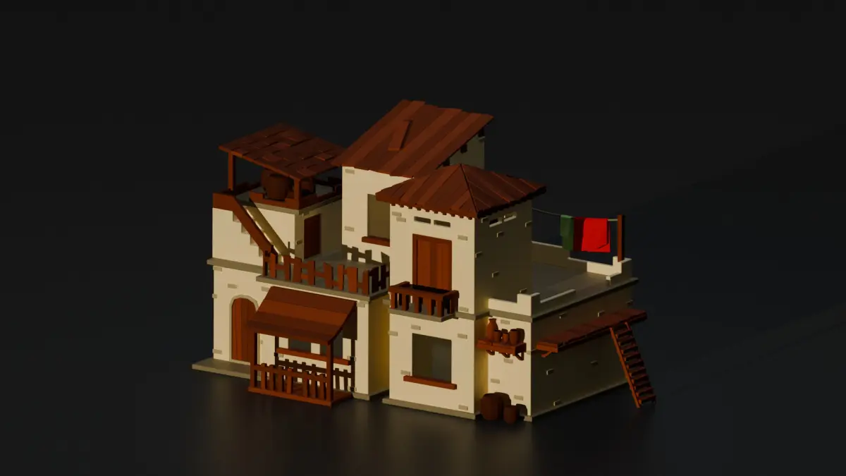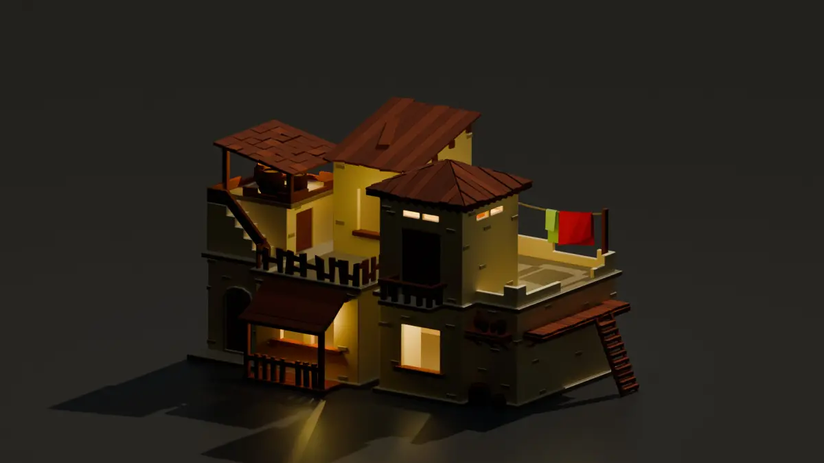 low poly, stylized, cartoon style, modular building, Indian house, Indian urban, desi house,traditional home, game-ready, mobile game asset, VR asset, AR asset, unity asset, unreal engine asset,rooftop, balcony, clothesline, clay pots, real-time asset, 3D asset, optimized mesh,lowpoly architecture, diorama building