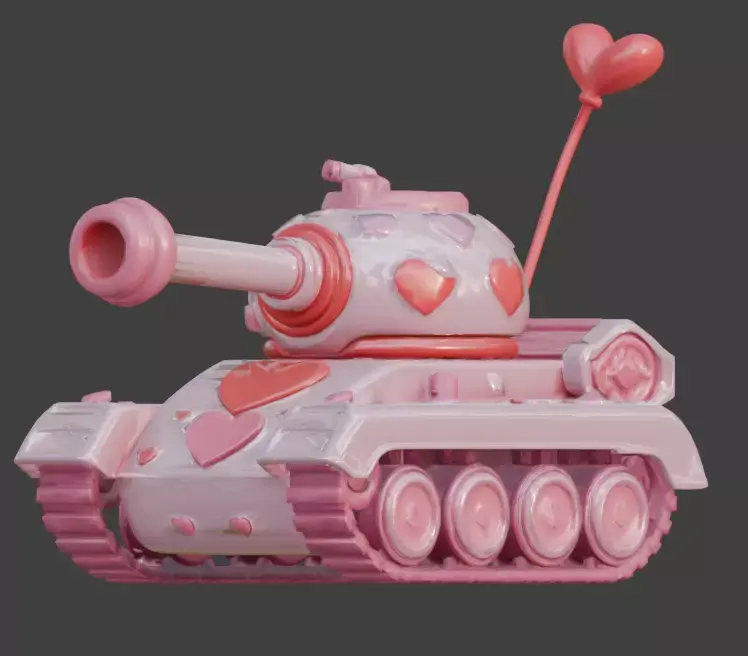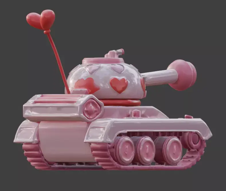 Tagsvalentine tank, 3d model, toy tank, stylized 3d, game ready asset, heart launcher, pink and red, romantic vehicle, cartoon tank, 3d prop, pastel pink, cute armor, mascot design, 3d toy, casual game, festive asset, love theme, social simulation, digital sculpture, friendly design