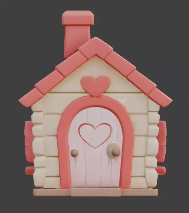 Tagsvalentine house, 3d model, wooden cabin, stylized 3d, game ready asset, heart windows, heart door, pink and cream, romantic design, cartoon building, 3d prop, cozy home, mascot design, 3d toy, casual game, festive asset, love theme, social simulation, digital sculpture, architectural prop