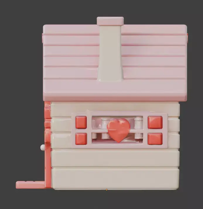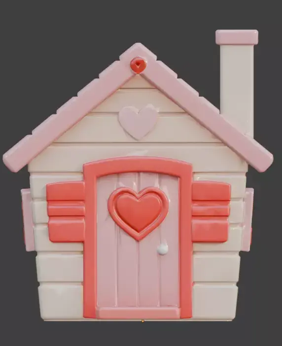 Tagsvalentine house, 3d model, wooden cabin, stylized 3d, game ready asset, heart windows, heart door, pink and cream, romantic design, cartoon building, 3d prop, cozy home, mascot design, 3d toy, casual game, festive asset, love theme, social simulation, digital sculpture, architectural prop